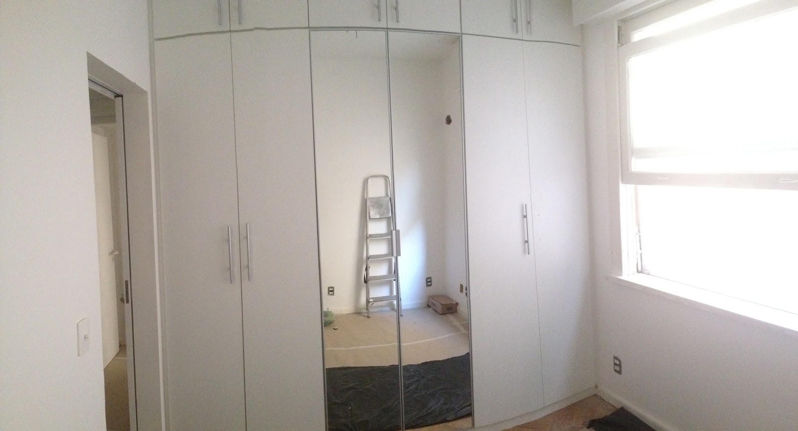 Como a vida não é perfeita e, no assunto obra, nada é simples (tipo contratou, montou, tá pronto), estamos com uma listinha de ajustes pra fazer: as portas de espelho do meu armário vieram empenadas, estamos achando as gavetas muito duras, vou precisar de mais uma prateleira na parte de cima dos armários, o nicho do cabideiro para Eduardo colocar ternos ficou muito pequeno e provavelmente vamos precisar limar uma gaveta... E como, no assunto obra, nada é rápido, estamos esperando há 10 dias a visita do supervisor de montagem para propostas de solução desses ajustes.